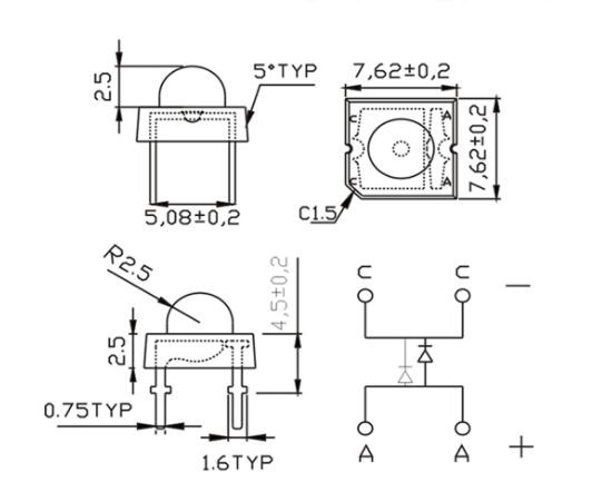 Dies ist eine quadratische LED mit 4 Pins, wodurch sie robust für die Montage auf Leiterplatten und Steckbrettern ist. Piranha-LEDs werden daher häufig in Autorücklichtern eingesetzt, da sie resistent gegen Vibrationen oder starke Stöße sind. Sind daher unter allen Umgebungsbedingungen stabil.