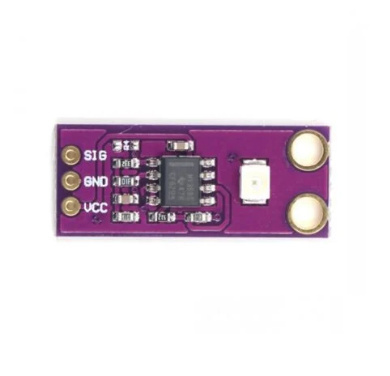 Das Modul enthält einen LM358-Doppeloperationsverstärker, der den Stromausgang des Sensors in eine Spannung umwandelt und diesen Ausgang dann verstärkt, sodass er vom Analogeingang einer MCU zur Durchführung von UV-Messungen gelesen werden kann.