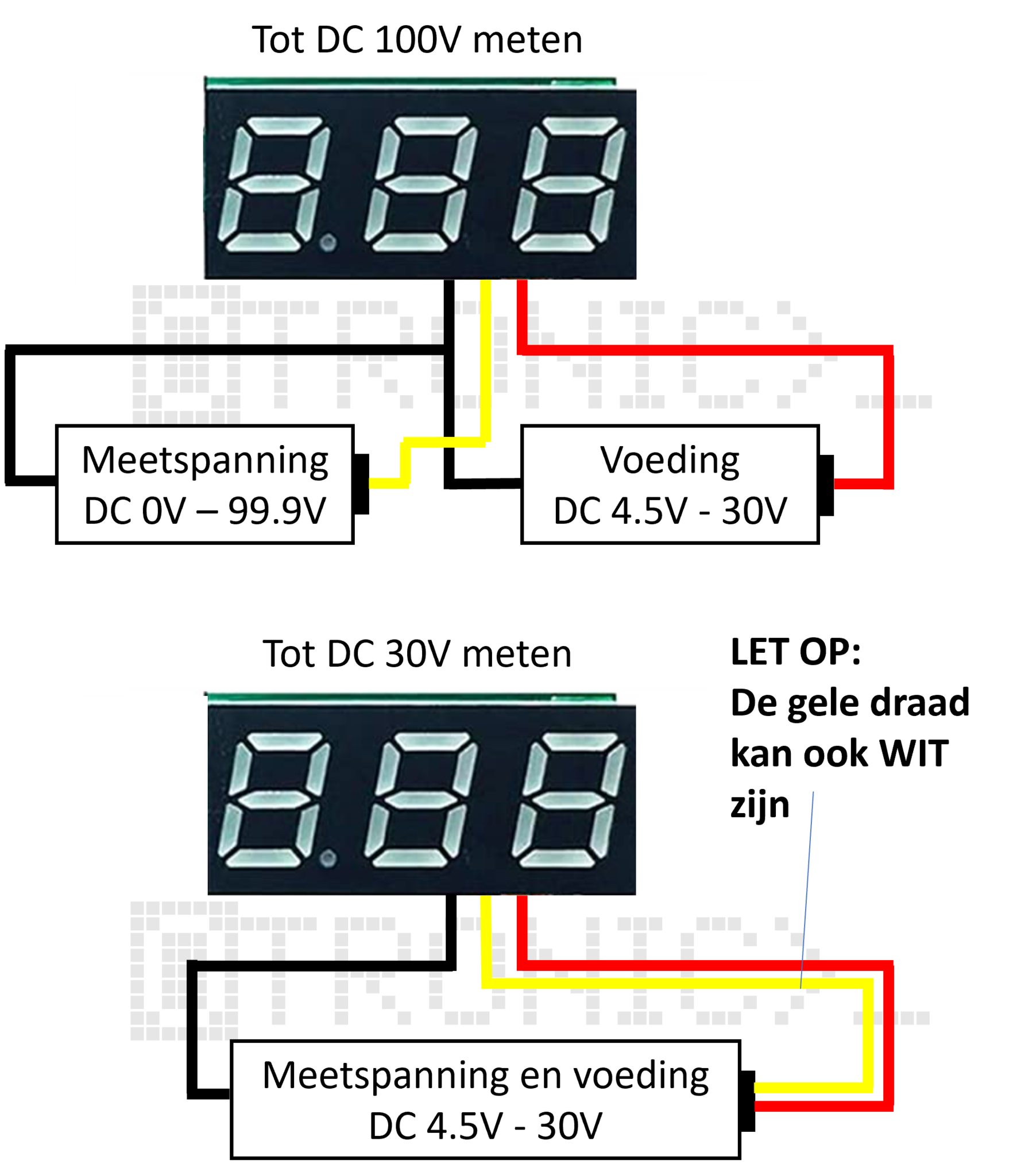 Kleines und kompaktes Digitalvoltmeter mit grüner LED-Anzeige, 0 - 100 V, 3 Leiter. Erfordert nur wenige Minuten Einrichtung und ist so einfach wie das direkte Anschließen von Kabeln an die Quelle, die Sie messen möchten, und das Beobachten des LED-Blitzes.