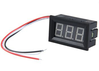 Kleines und kompaktes Digitalvoltmeter mit roter LED-Anzeige, 0 - 100 V, 3 Leiter. Erfordert nur wenige Minuten Einrichtung und ist so einfach wie das direkte Anschließen von Kabeln an die Quelle, die Sie messen möchten, und das Beobachten des LED-Blitzes.