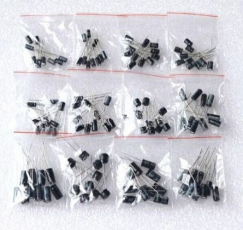 120-piece capacitor set with 12 values from 0.22uF to 470uF ELCOs10x 50v 0.22uf10x 50v 0.47uf10x 50v 1uf10x 50v 2.2uf10x 50v 4.7uf10x 25v 10uf10x 16v 22uf 10x 16v 33uf10x 16v 47uf10x 16v 100uf10x 16v 220uf10x 16v 470uf
