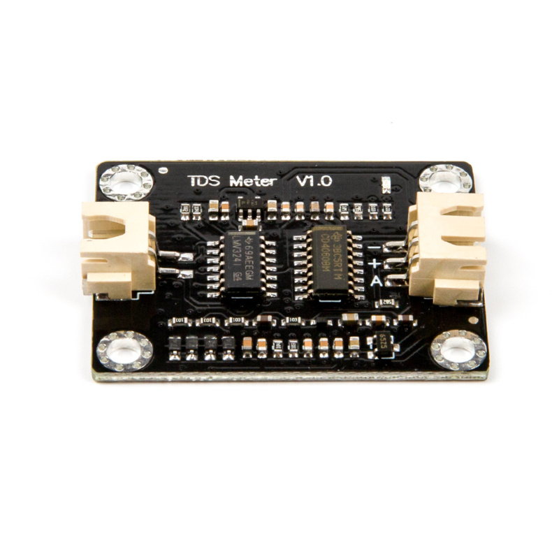 This Analog TDS Sensor Module is an Arduino compatible TDS sensor/Sensor kit for measuring the TDS value of water based on conductivity. Suitable for 5.5V or 3.3VThis module is suitable for Arduino controllers, plug and play, and easy to use. Water quality is measured based on TDS value. TDS (Total Dissolved Solids) indicates how many milligrams of soluble solids are dissolved in one liter of water. In general, the higher the TDS value, the more soluble solids are present in water and the less clean the water is. Therefore, the TDS value can be used as a variable to test the purity of water. This TDS value is determined by determining the total amount of various organic or inorganic substances dissolved in water, in the unit of ppm or milligram per liter (mg/l). The electrode measures the conductivity of, for example, suspended solids/solids, heavy metals and conductive ions in water. The module is supplied with four fixed holes of 3.2 mm, and is therefore easy to mount on other devices. The TDS probe is waterproof and can be immersed in water for long-term measurements.