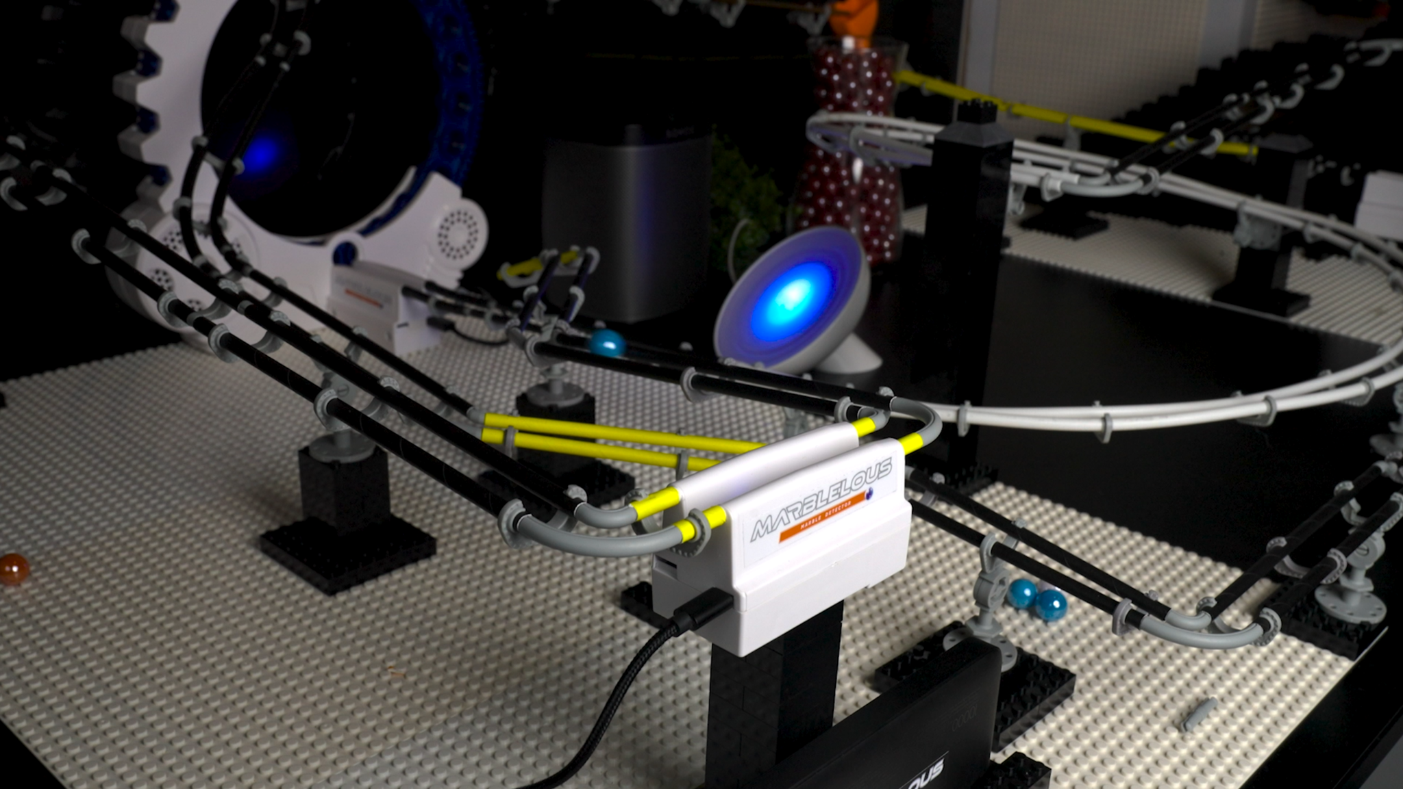 The ultimate upgrade for your Marblelous marble run: the Marble Detector! This smart device detects every marble passing by – even at high speed – and instantly recognizes its color. Bring your marble run to life with technology, creativity and endless possibilities.