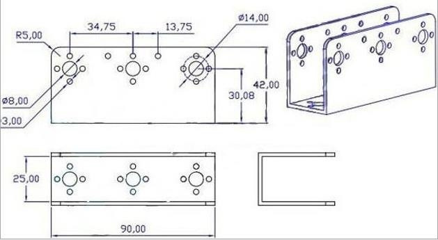 Robot Bracket U Bridge is a multifunctional part for robots and other DIY projects.Type: Robot Bracket U or C BridgeMaterial: 2mm Hard aluminumSurface: Sandblasting oxidationDimensions: 90.5mm x 41mm x 25mm