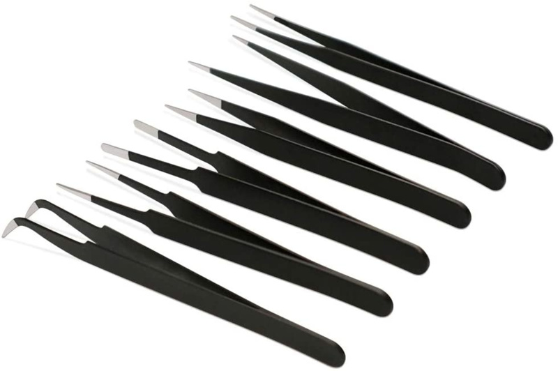 This anti-static tweezer set is ideal for finer and smaller precision work. Positioning a chip or SMD component is very easy with this tool. Material: Stainless steel The set consists of 6 tweezers
