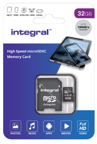 Integral 32GB V10 Carte microSDHC Haute Vitesse Class 10 - 100MB/s avec Adaptateur SD (AG12580)