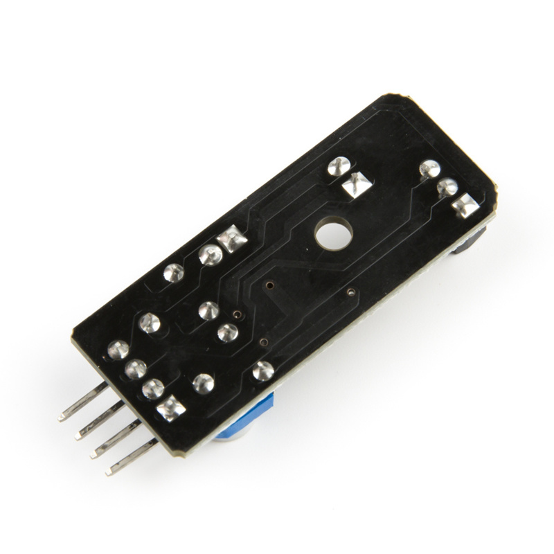 Module infrarouge d'évitement d'obstacles. Lit la distance aux obstacles à une distance de 2-30 cm et 35 degrés au moyen de signaux infrarouges. Contient un émetteur et un récepteur infrarouge. Donne un signal 5V s'il n'y a pas d'obstacle et un signal 0V s'il y a un obstacle et que la LED verte s'allume. La distance peut être ajustée avec un potentiomètre. Fonctionne avec 3,3 V et 5 V, dispose d'une LED d'alimentation rouge.