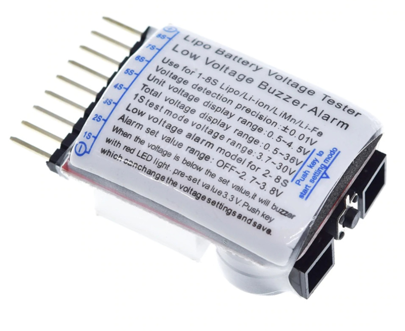 Alarme Lipo pour se protéger contre une décharge trop profonde d'une batterie LIPO. Dès qu'elle descend en dessous de la valeur seuil définie, cette alarme donnera un signal clair afin que vous sachiez que vous devez arrêter de charger la batterie.