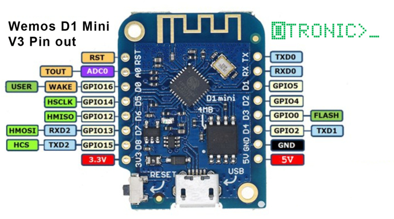 RetourAccueilAffichagesAffichages LCDWemos D1 Mini V3 | ESP8266| Wi-Fi | Carte de développement CH340