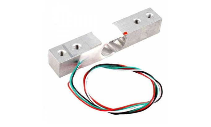 Deze Load Cell is geschikt voor het meten tot 5kg en wordt onder andere gebruikt in digitale keukenweegschalen. Om de sensor uit te lezen heb je eenHX-711 Load Cell versterker nodig. Je kunt de sensor niet direct op een Arduino aansluiten.