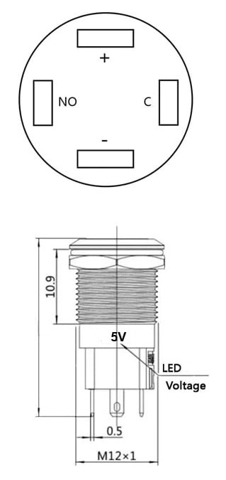 Drukknop | aan-uit self lock | 5V LED Wit | RVS | 12mm (OT5804)