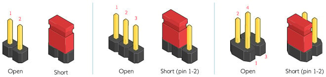 Deze jumpers maken een elektrische verbinding (kortsluiting) tussen twee male pin headers met een tussenafstand van 2,54 mm.