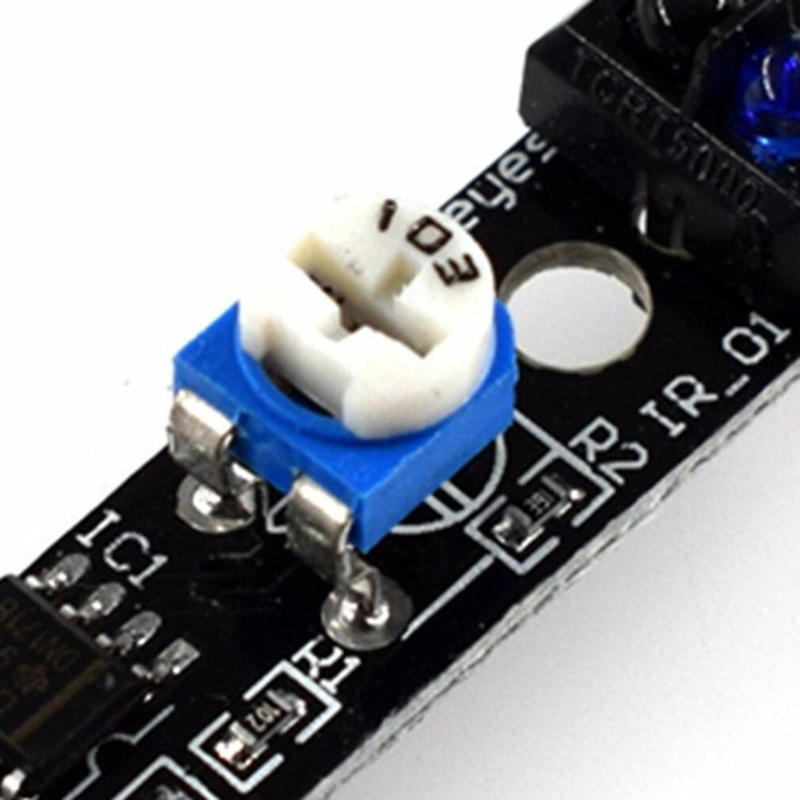 Deze sensor, die vooral wordt gebruikt voor lijntracking, heeft een vergelijkbare werking als die van bewegingsdetectiesensoren. Gebaseerd op TCRT5000 IC. De TCRT5000 sensor straalt continu infrarood licht uit. Als de uitgezonden golf niet of zeer slecht wordt gereflecteerd, is de output LAAG. Als je een object voor deze sensor plaatst, wordt de output HOOG.