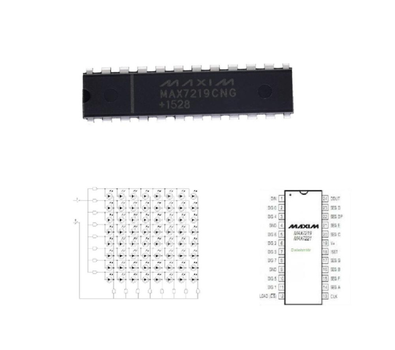 De MAX7219CNG is een seriële input / output common-cathode display driver om 7-segment numerieke LED displays van maximaal 8 cijfers, bar-graphs of 64 individuele leds aan te sturen.