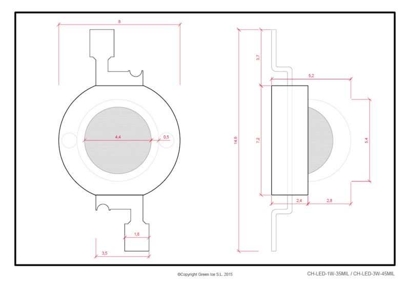 Deze High Power LED's zijn uitermate geschikt voor spotverlichting en vereisen een spanning tussen 3,0 en 3,5V, met een nominale waarde van 3,3V.