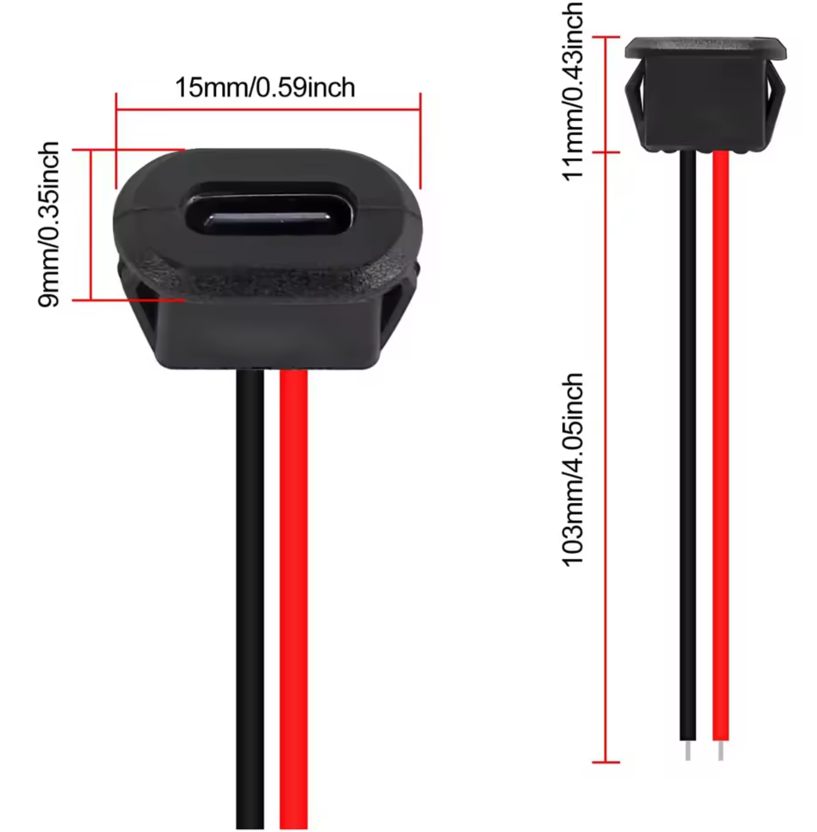 Deze USB-C inbouw socket is ideaal voor het netjes en professioneel inbouwen van een USB-C aansluiting in je behuizing. Het chassisdeel heeft een klik systeem en wordt geleverd met een 10 cm kabeltje in rood en zwart. Geschikt voor 5V spanning en laden, zonder dataoverdracht.
