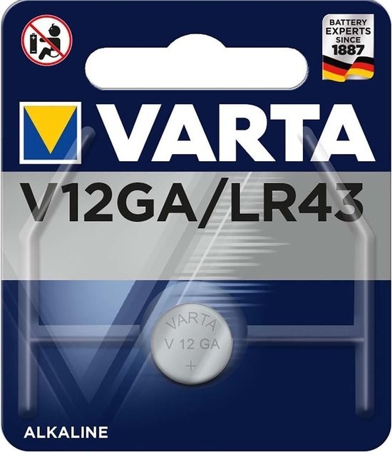 De Varta V12GA/LR43 is een betrouwbare alkaline knoopcelbatterij met een spanning van 1.55V en een capaciteit van 80mAh. Deze batterij is ideaal voor gebruik in diverse apparaten zoals horloges, digitale camera's en rekenmachines, waar standaardbatterijen te groot zijn. Het is cruciaal om het juiste type batterij te selecteren dat overeenkomt met de specificaties van uw apparaat. Deze knoopcel biedt de benodigde energie en is speciaal ontworpen voor maximale prestaties en betrouwbaarheid.